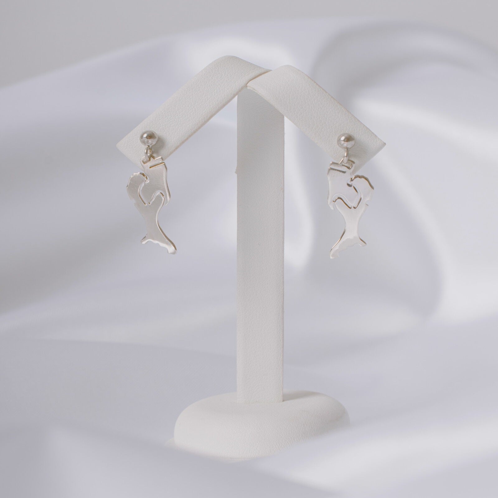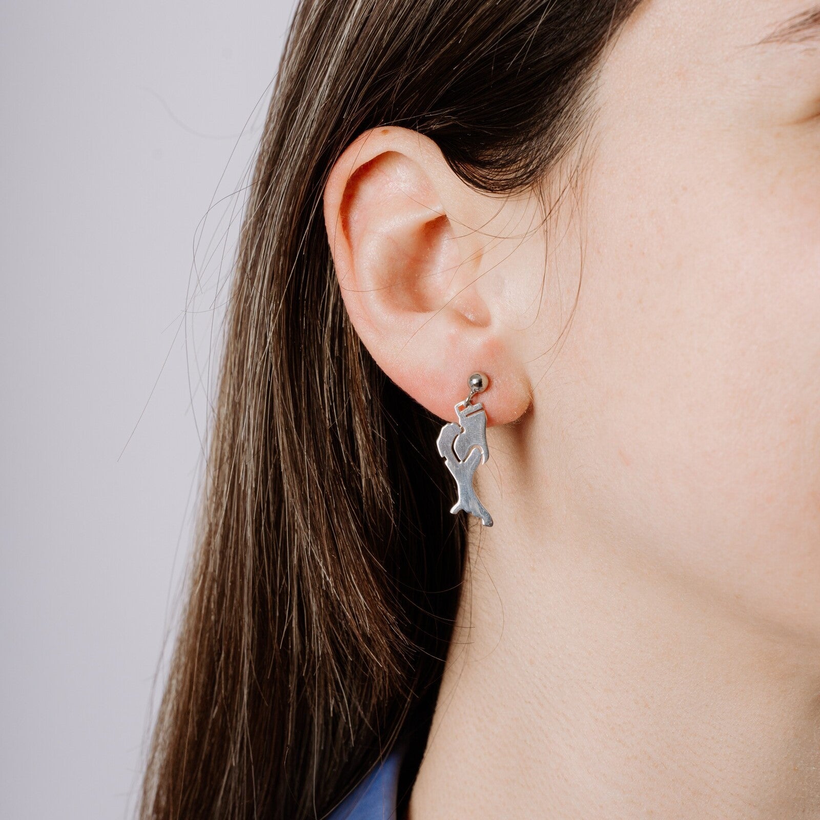 Orecchini pendenti fatti a mano in argento 925, chiusura con perno e farfallina.